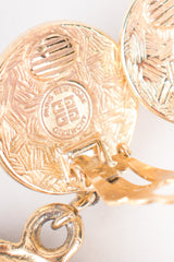 Statement enamel drop hoop earrings by Givenchy. Large signature hoop earrings hang from a faux pearl stud. Both classy and flashy, these earrings make a bold statement and add designer flare to complete any outfit. Signed circle cartouche at back of both posts and hoops. We'd wear these babies with everything- they can go from your favorite denim jacket to a formal LBD. Gold, black, pearl.