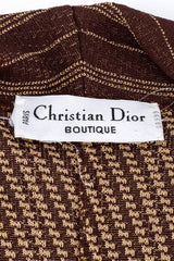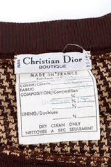 Double knit skirt suit set with pinstripe on the exterior and houndstooth on the reverse by Christian Dior.