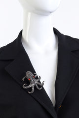 Beautiful rhinestoned Octopus brooch featuring twinkling tentacles by the "King of Costume Jewelry," Kenneth Jay Lane.
