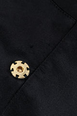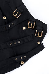 - Three front signed belt buckles, front flap with six hidden snap button closure