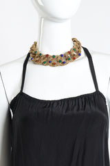 Curb link necklace embellished in glass cabochons by Les Bernard.