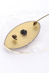 Copper face brooch with an organic Lucite bonnet unsigned by Elzac California.