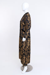 Shimmering duster tunic and pant set with a metallic floral brocade pattern by Escada Couture.
