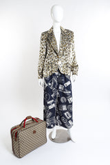 Classic monogram travel suitcase with striped web accents by Gucci.