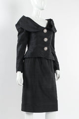 Silk jacket and skirt set featuring rhinestone brooch buttons by Victor Costa for I.Magnin.