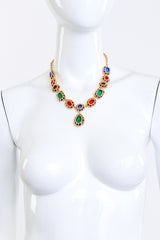 - Eleven polished faceted shaped stones with gold rope etched chain trim
