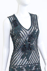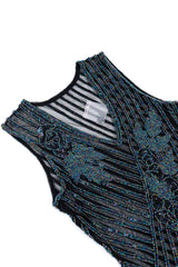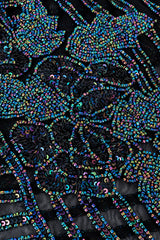 Roaring 20s ready in this vintage flapper style sheer shift dress adorned with iridescent aurora borealis beads.